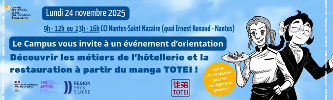 Les participants sont invités à découvrir les métiers de manière différenciante et interactive, à partir d’un outil pédagogique et culturel inédit : la collection de mangas TOTEI, qui met en scène d'authentiques apprentis en hôtellerie-restauration des Pays de la Loire.